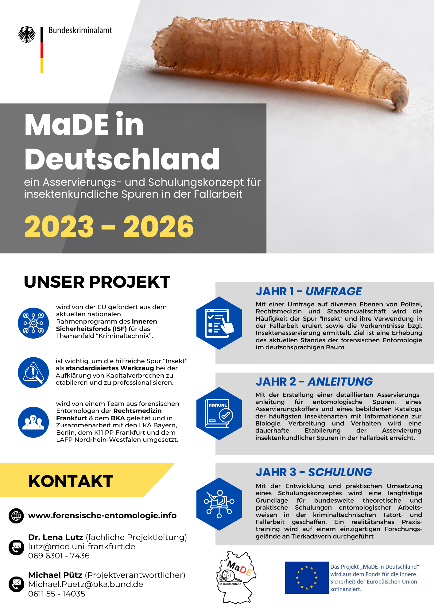 Kurzbeschreibung des Projektes "MaDE in Deutschland - ein Asservierungs- und Schulungskonzept für insektenkundliche Spuren in der Fallarbeit"